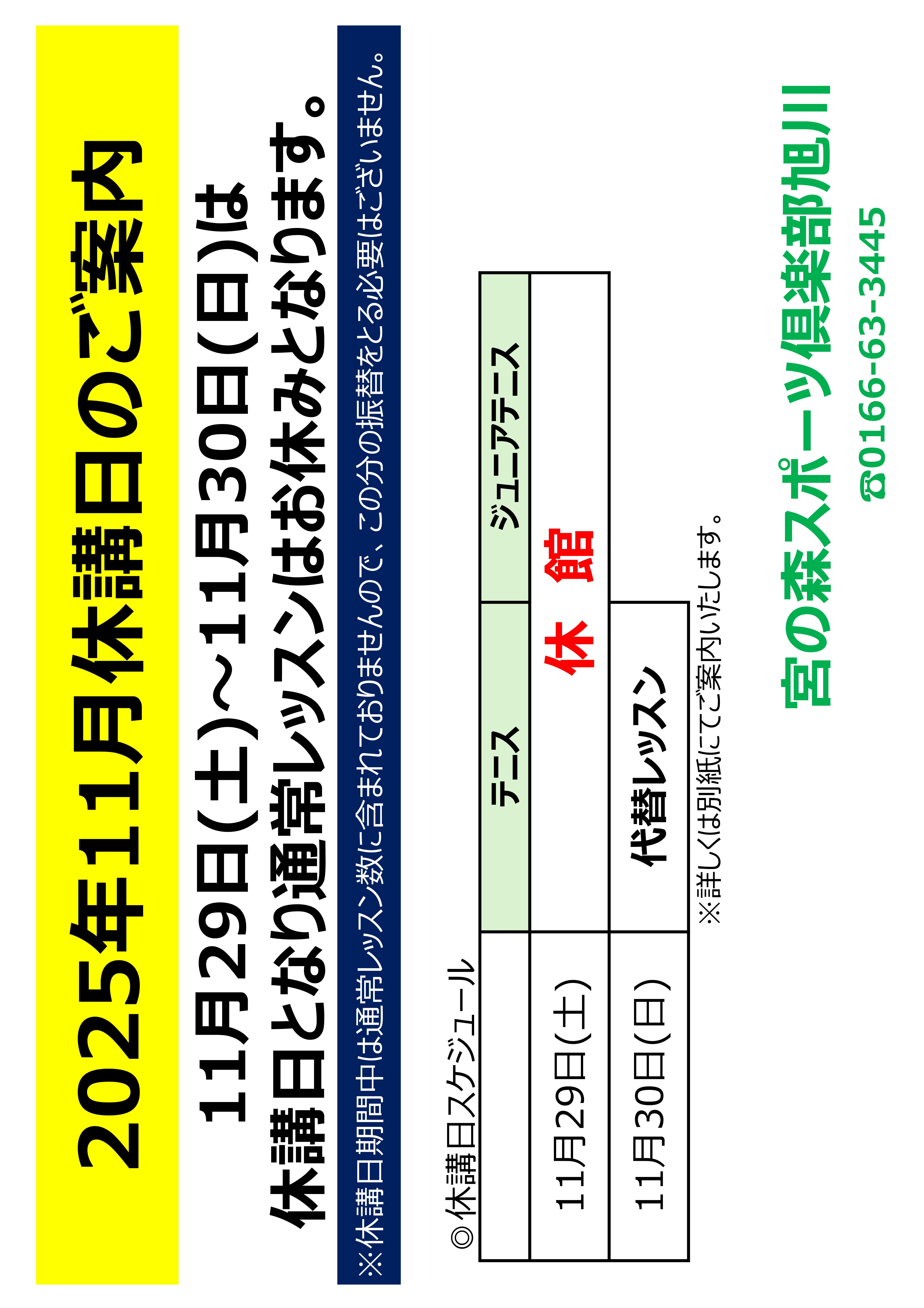 - 11月休講日のご案内