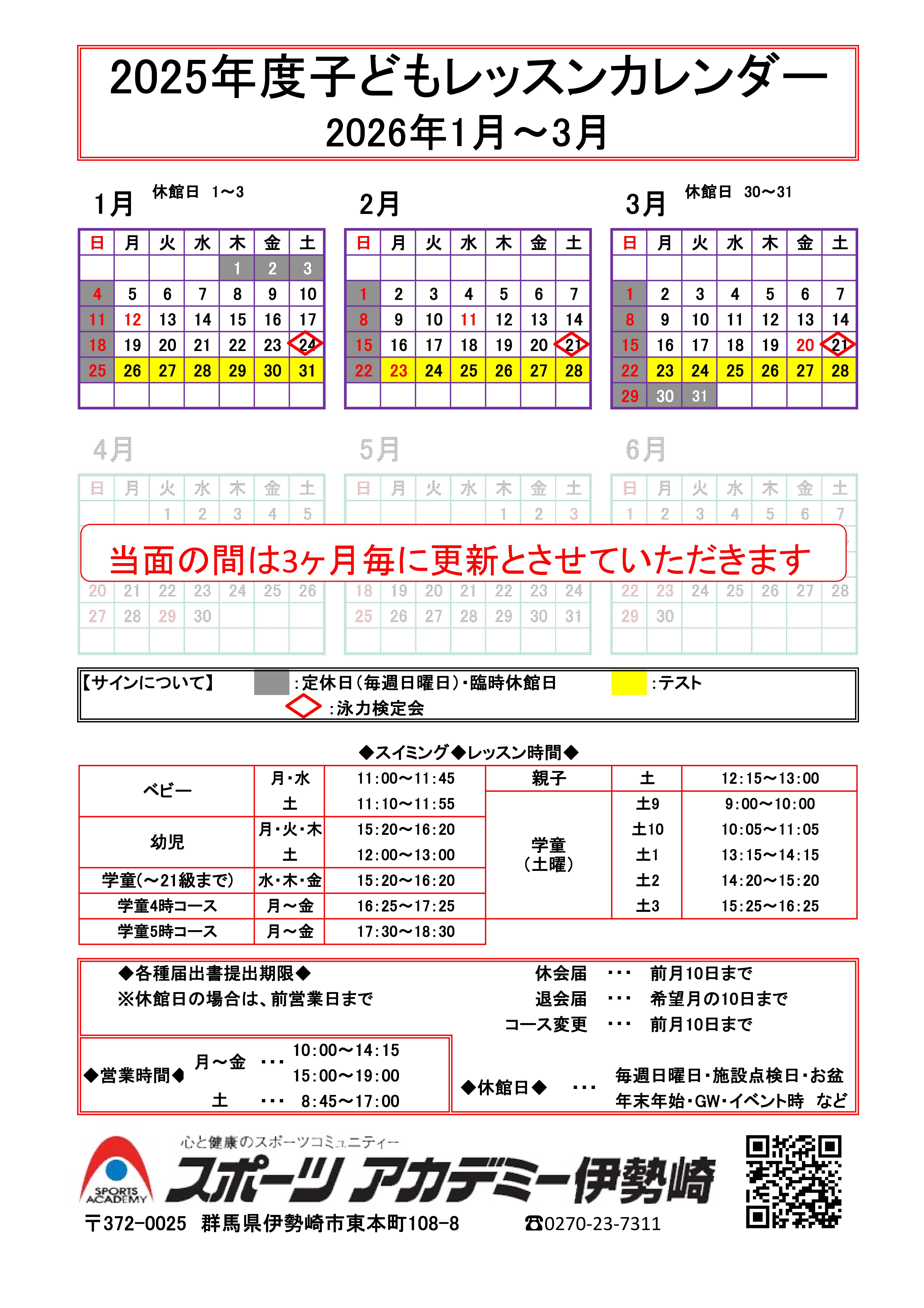 毎週日曜日、特別休館日(GW、お盆、年末年始)