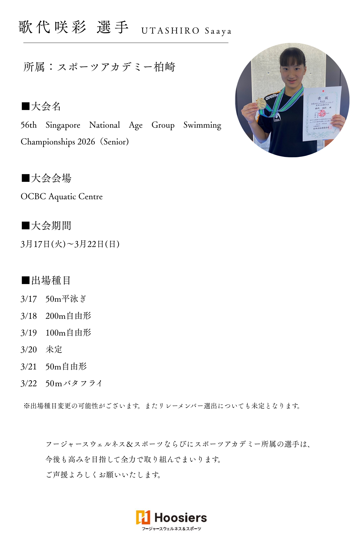 日本水泳連盟 シンガポール遠征代表選手ページ