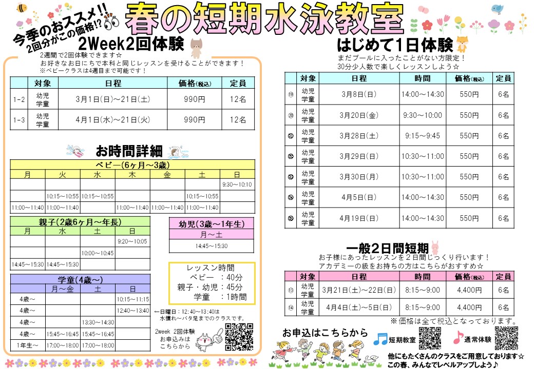 - 春の短期水泳教室開催中♪