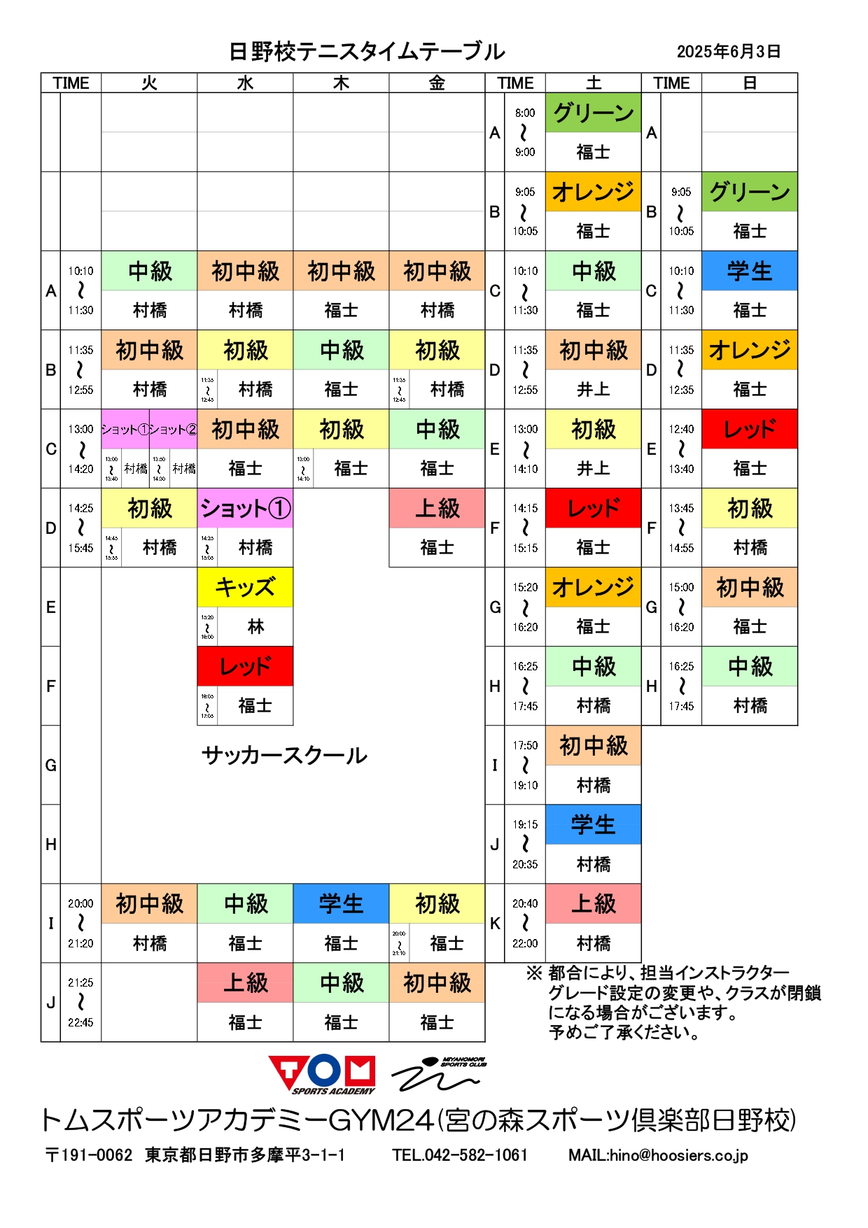 ※火~土の午後のジュニアレッスンの時間帯はご利用いただけません。